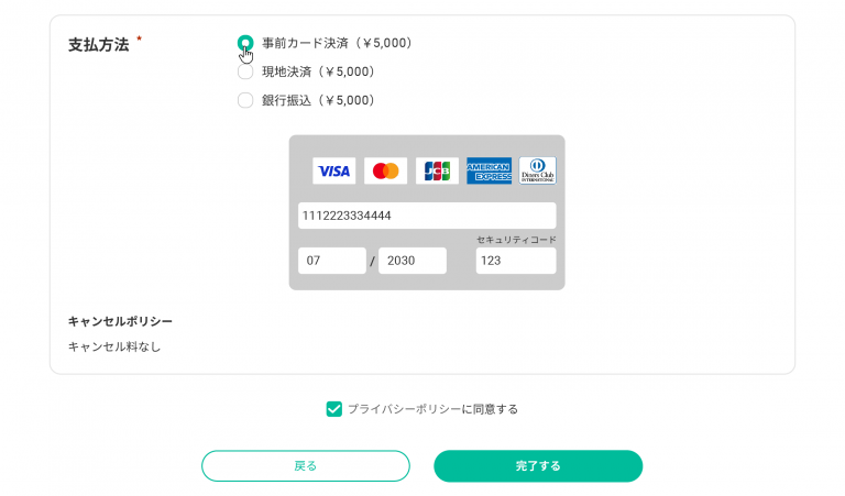 事前カード決済機能を設定すれば、予約時点で受講料をオンライン決済できます。教室での現金管理が不要になり、受付業務の時間を削減できます。事前決済により無断キャンセルの抑止効果が期待でき、収益の安定化にも寄与します。キャンセル期限やキャンセル料の設定と組み合わせることで、韓国語教室の予約システムとしてより堅実な運営体制を構築できます。